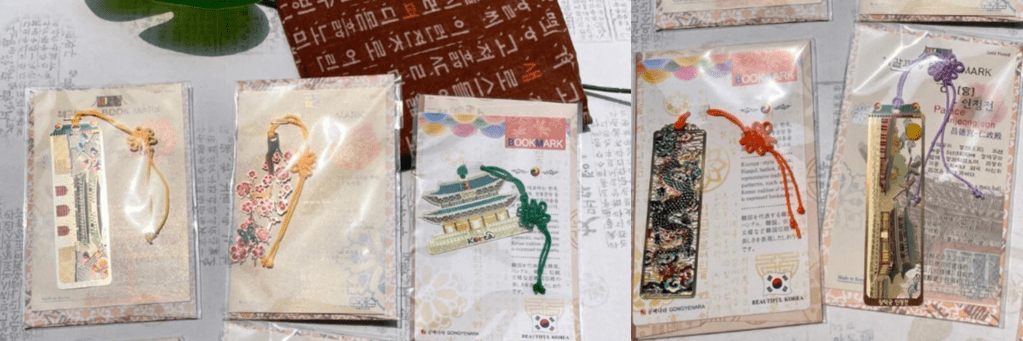 Before heading home, we stopped by YP Books in COEX so my mom could pick up some souvenirs for her friends back in Peru. We chose beautiful metal bookmarks showcasing traditional Korean designs, perfect as meaningful keepsakes.